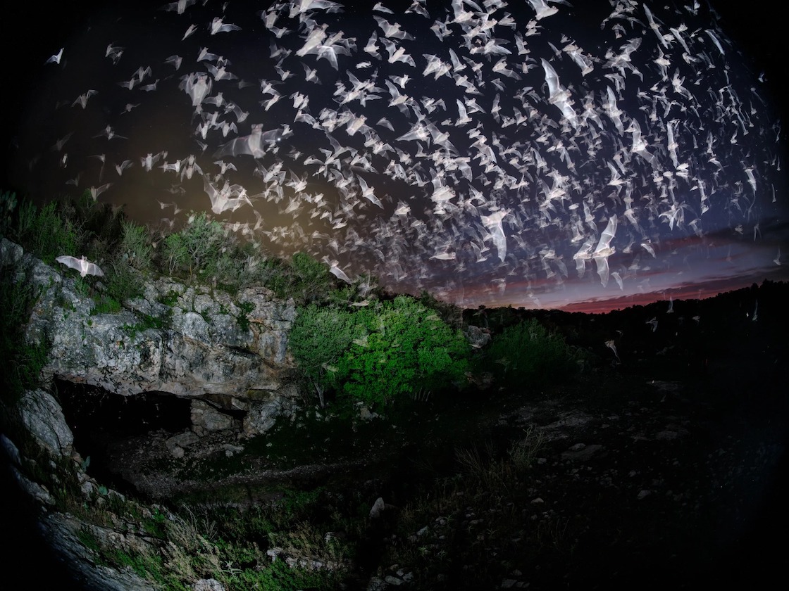 Foto: Babak Tafreshi vía National Geographic // Miles de murciélagos saliendo de una cueva en Texas.